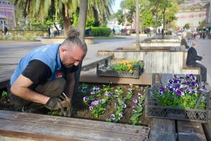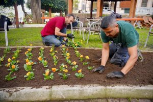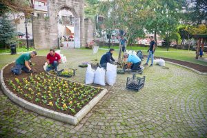 Ekipler, şehir genelinde yürüttükleri peyzaj çalışmaları kapsamında son olarak her gün binlerce kişinin uğrak yeri olan Atatürk Meydanı ve Kale Mahallesi’nde yer alan Tarihi Millet Bahçesi’nde çiçek dikimi gerçekleştirdi.